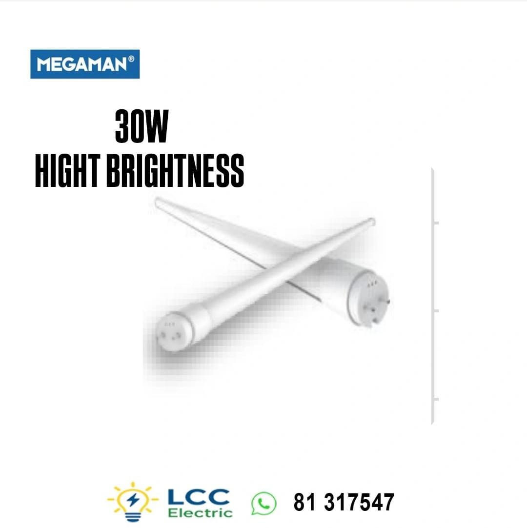 Brilliant Led Tube T8 30W Hight Brightness Single Ended Megaman With just 30 watts of power consumption, this LED tube produces strong and consistent illumination while using far less energy compared to traditional fluorescent tubes. In Lebanon, where electricity bills are a major concern and power efficiency is essential, this LED T8 tube provides immediate savings. It is the smart choice for households, offices, shops, schools, and industrial spaces that need reliable and cost-effective lighting.