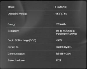 Lithium FLA Technology: Advanced lithium iron phosphate (LiFePO4) chemistry combined with FLA technology ensures safety, stability, and superior performance.