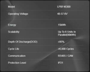The Felicity Solar 15KW 48V 300AH LPBF Lithium Battery is a trusted global brand known for quality and reliability. The LPBF48300 Lebanon model combines advanced lithium technology with durability suited for Lebanon’s unique power challenges. Customers appreciate its easy installation, long cycle life, and compatibility with a wide range of inverters.