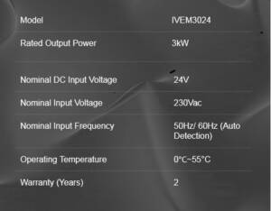 Felicity Solar 3KW 24V IVEM3024 Hybrid Inverter For added reliability, the 3kW solar inverter comes with a manufacturer warranty, giving you peace of mind and confidence in your investment. Regular technical support and customer service are also available to assist with setup, troubleshooting, or general questions.