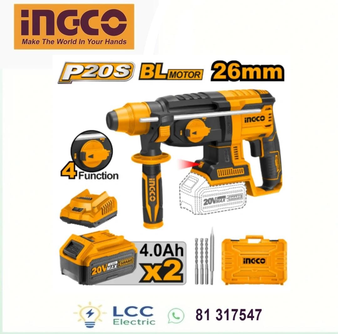 High Quality INGCO Cordless Rotary Hammer 20V The INGCO Cordless Rotary Hammer 20V is a high-performance, versatile, and portable power tool designed for drilling, hammer drilling, and chiseling in concrete, brick, and masonry. Perfect for homeowners, contractors, and construction professionals in Lebanon, this cordless rotary hammer combines power, flexibility, and convenience in one robust package.