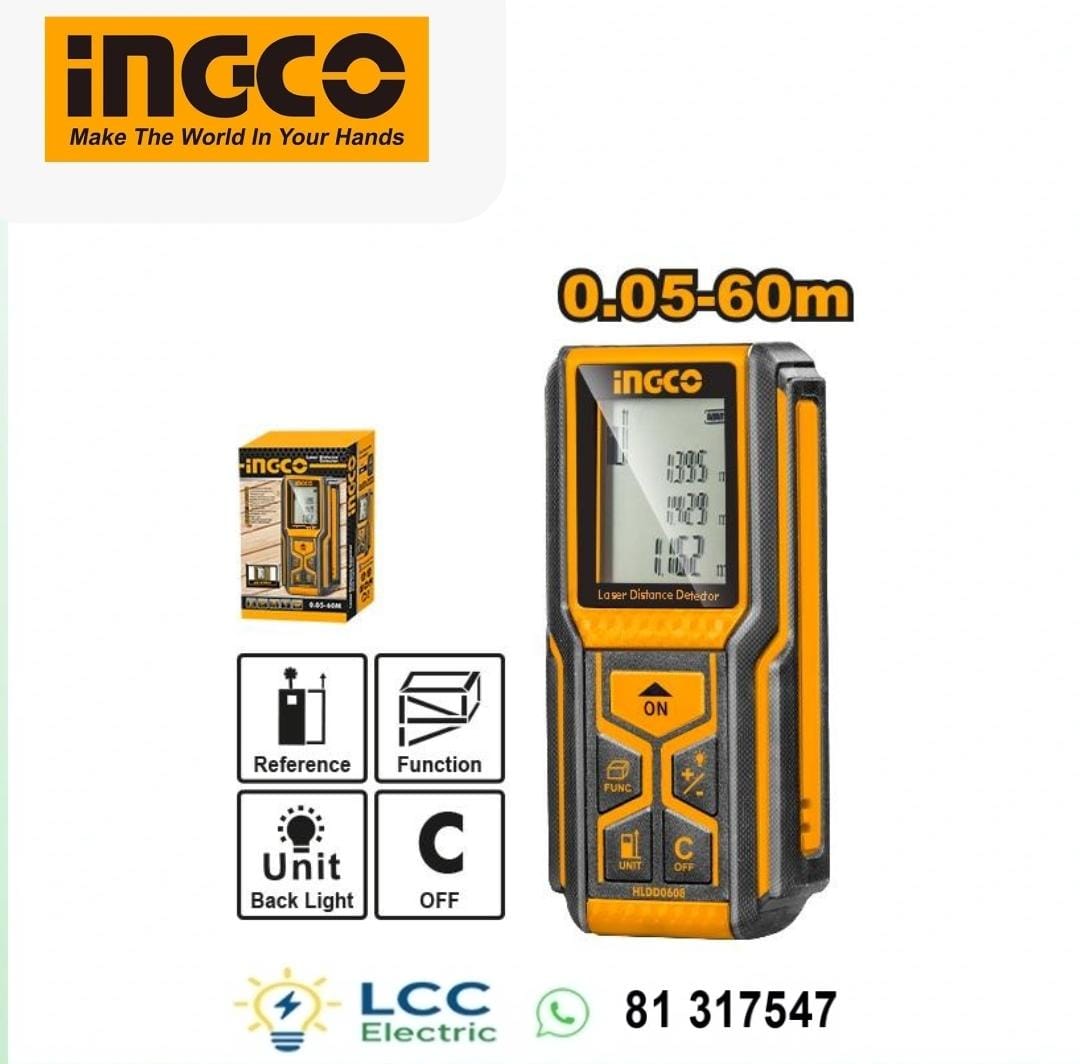 High Quality INGCO Laser Distance Detector 60 LCD The INGCO Laser Distance Detector 60 LCD is a must-have tool for professionals and home users across Lebanon seeking accurate, efficient, and reliable measurements. Designed with precision and user convenience in mind, this laser distance detector simplifies measuring distances, areas, and volumes, whether you are on a construction site, renovating your home, or working on DIY projects.